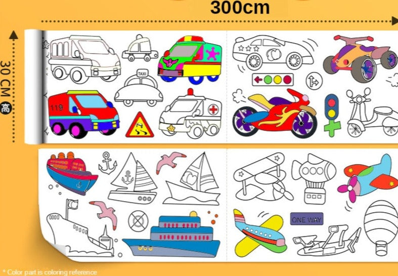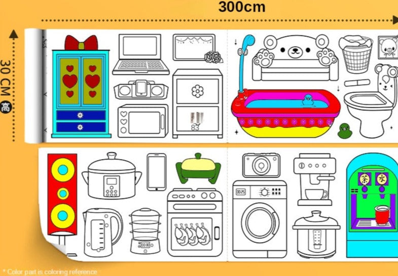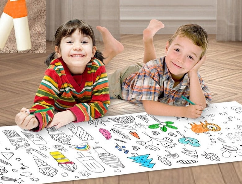 Agora seus filhos terão3 metrosde desenhos para colorir!