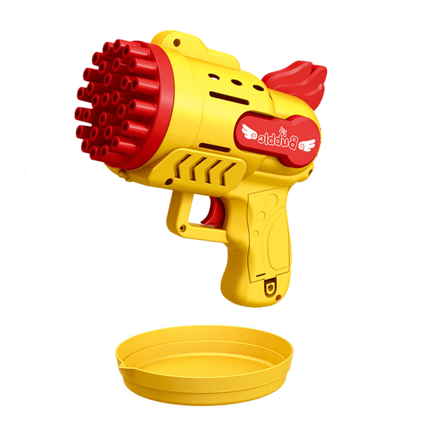Basta fazer a mistura com sabão, molhar os furos da arminha e atirar as bolhas!