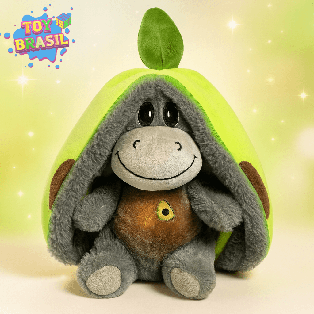 Feche o zíper e o burrinho vira um lindo morango ou um divertido abacate!