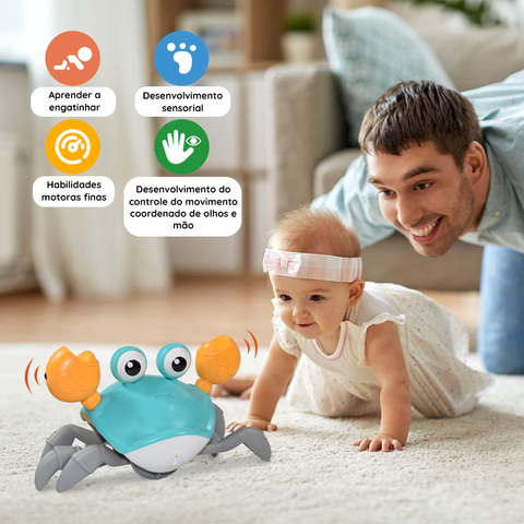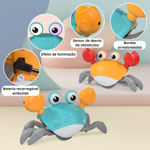 O Caranguejo Criativo Fujão é um brinquedo eletrônico que anda eestimula o gatinhar e andarda criança de forma divertida!