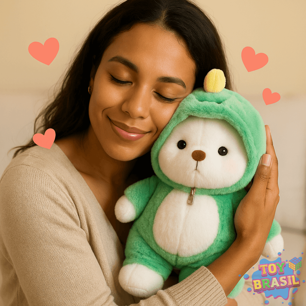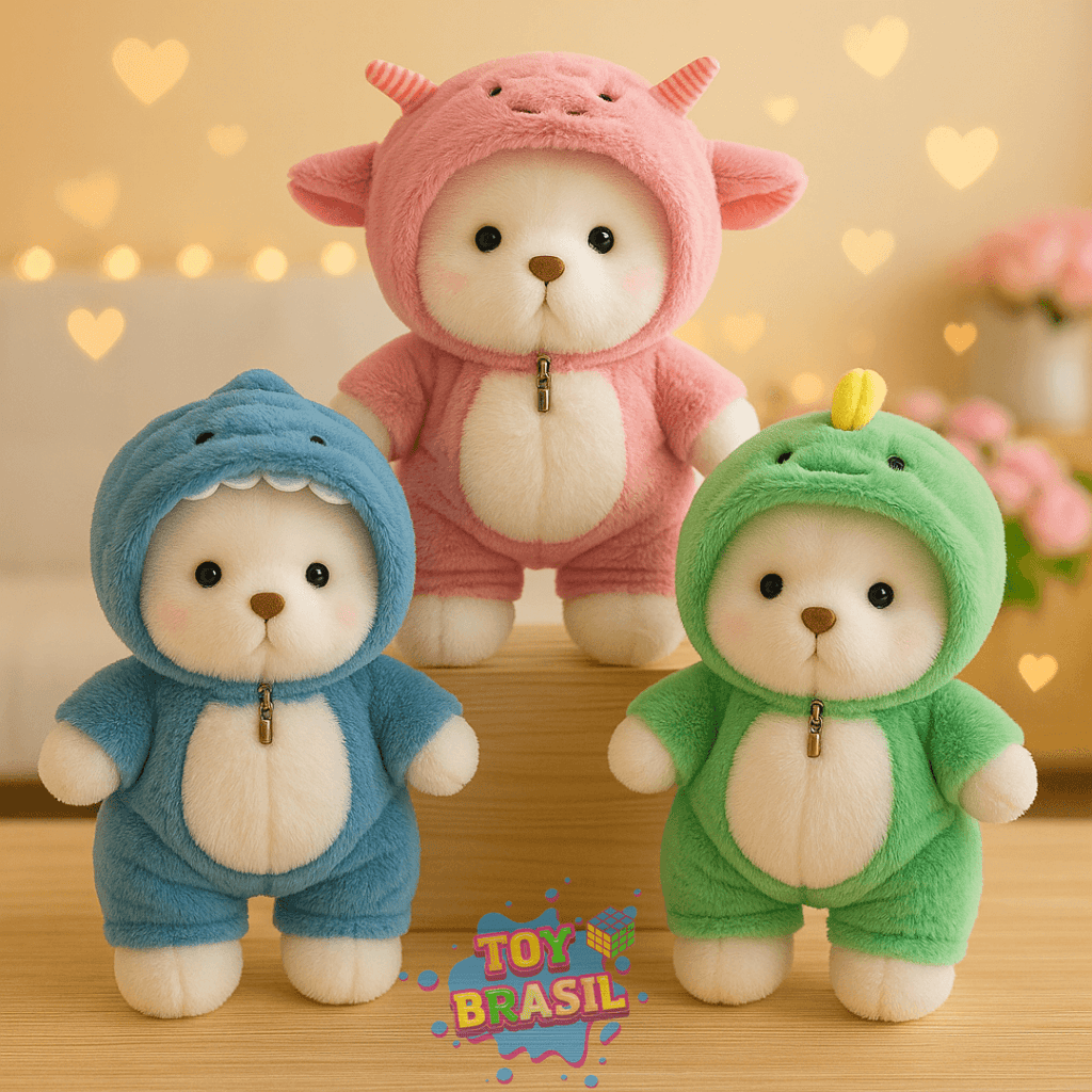 Cada ursinho vem com uma roupinha adorável (rosa, verde ou azul), que representa carinho, proteção e momentos inesquecíveis! É impossível resistir a esse abraço tão macio e cheio de amor.